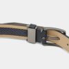 シンプルなデザインの裏メッシュベルト。表側にパンチング、裏側には通気性のあるWラッセルメッシュを使用し、腰部分の嫌なムレ感を軽減。暑い時期のスポーツシーンはもちろん、普段のカジュアルスタイルのアクセントにも活躍します。