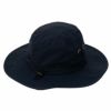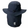 つば縁に形を整えるプラ芯入りで美しいシルエットをキープ。サイズ調整用のスピンドル付き。通気性を高めるアイレットを配置。取り外し可能なサンシェードと着脱式のあご紐を装備。