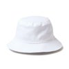 伸縮性のある7.5ozのコットンツイル生地を使用した、手洗い可能なコレクション。スウェットバンドには、抗菌効果のあるMICROERAを使用。シルエットはバケツをひっくり返したようなシルエットが特徴のバケットハット。ブリム(つば)が下向きに付いています。