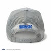 シルエットは9FORTYをベースに、フロント部1枚パネルにして上部をつまんだ独特のシルエットが特徴。 フロントパネルの内側に独自の芯を作ることで型崩れしにくいシルエットが保たれます。少し深みがある被り心地です。 バイザー(つば)はあらかじめ着用しやすい状態にカーブしています。リアのアジャスターで頭回り約56.8cmから60.6cmまでサイズ調整が可能です。