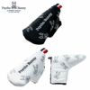 薄手の軽いポリエステル生地を使った、定番ピン型パターカバー。内側にはクラブを保護するファー生地使用。パターキャッチャー等をつけられるトリコロールテープ付き。
