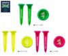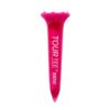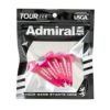TOUR TEE x Admiral GOLF コラボ商品。 1パック5本入り。芝の上で目立つポップなネオンカラー。木製ティーに比べて折れにくく、耐久性に優れる。特殊なカップ形状でボールを乗せやすく、ショット時のストレスを軽減。カップ部分にはゴム素材を使用し、抵抗を抑えて飛距離と安定性に貢献。先端の突起状の爪がティーの飛び出しを抑え、紛失しにくくなっています。ディボットツールとしても使用可能。