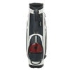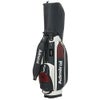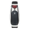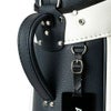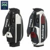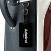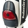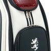 深いエンボスが施された合成皮革と光沢のあるエナメル素材を組み合わせたデザイン。さらに、ストライプテープをアクセントとして取り入れています。前ポケットには他のアイテムと共通のサークルラバーワッペンが使用されています。口枠6分割、セパレーター数4分割。