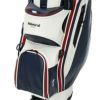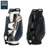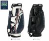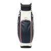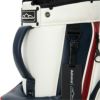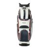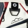 AdmiralとSun Mountainのコラボレーションキャディバッグ。ロゴをプリントで配置。ソフトで高級感のある合成皮革を使用。持ち運びを考慮したハンドル付きの口枠仕様。フロントポケット下段はオンネーム対応で取り外し可能。ポケット多数、保冷ポケットや貴重品用ポケットも備え、収納力に優れる構造。