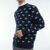 静電気軽減リンキング糸を使用した、サラリと滑らかな風合いのレーヨン混素材を採用したジャカードクルーセーター。