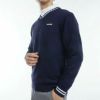 遠赤外線を放出し、保温性に優れ、軽量かつソフトな風合いが特徴のホットレイを採用したVネックセーター。