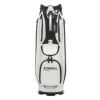 このキャディバッグは、口枠が9型でマルチグリップスタイルを採用しています。収納ポケットは全9つあり、使い勝手が良く、必要なアイテムをすっきりと収納できます。ボトムにはスプリング安定ボトムが採用されており、安定した設置が可能です。ウエルダーロゴがデザインの一部を飾り、両サイドの成型パーツにはスポーツモデルの特徴的なデザインが施されています。口枠6分割、セパレーター数3分割。