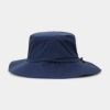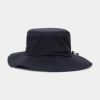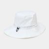 耐水圧20,000mm・透湿20,000gの高機能素材を使用したレインハット。後部のスピンドルゴムで簡単にサイズ調整が可能で、ベンチレーション付きなのでハット内の蒸れを防ぎ快適に着用できます。広めのツバが首の後ろまでしっかりカバーするデザインで、雨の日のゴルフも安心です。