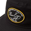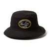 伸縮性のある7.5ozのコットンツイル生地を使用した、手洗い可能なコレクション。スウェットバンドには、抗菌効果のあるMICROERAを使用。シルエットはバケツをひっくり返したようなシルエットが特徴のバケットハット。ブリム(つば)が下向きに付いています。