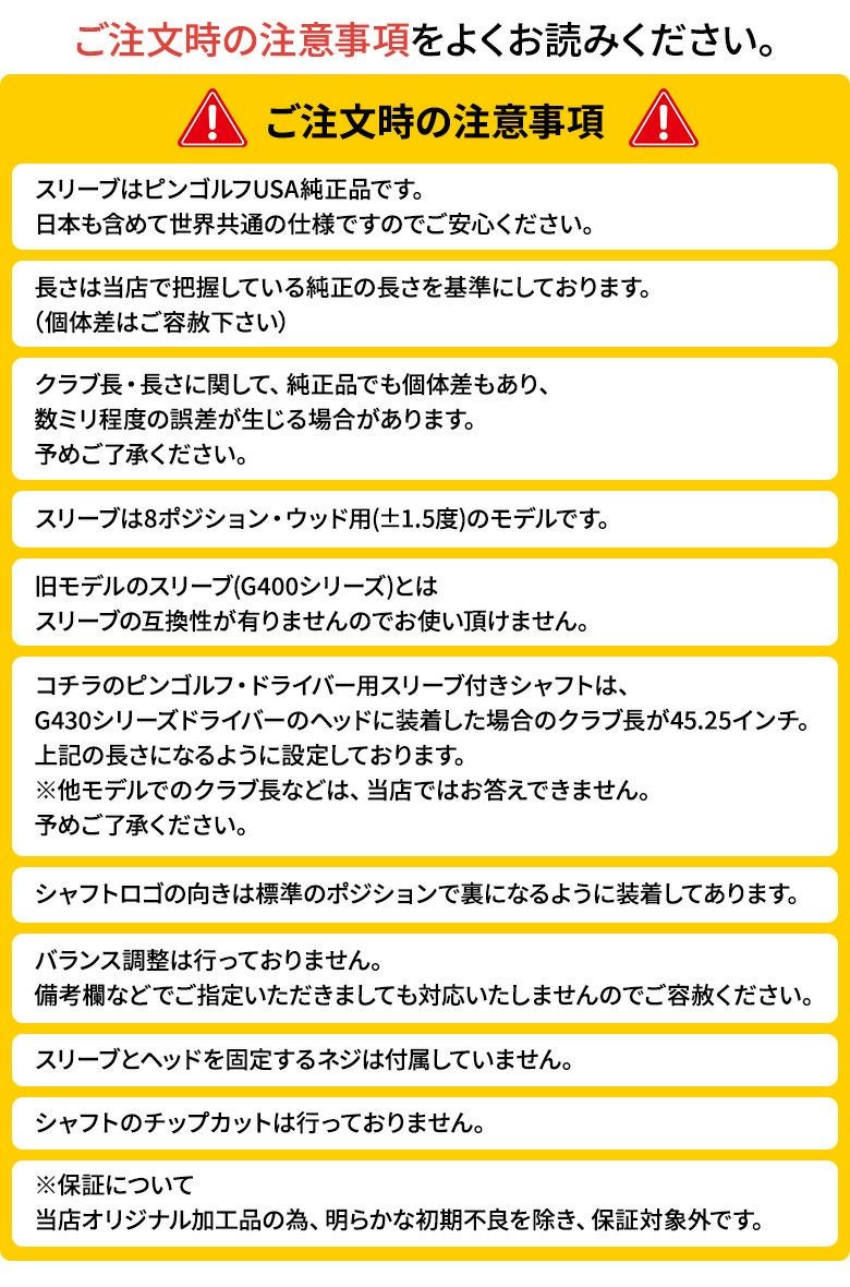 他の画像を見る 【純正スリーブ付きシャフト】PING G440 G430 G425 G410 ドライバー用 DAWAKIN IMPACT +D ダワキン インパクト +D カーボンシャフト 当店販売価格 ¥ 66,000 税込 カートに入れる お気に入りに登録する