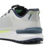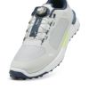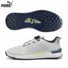 フルレングスの IGNITE フォームが一日中快適でツアーで証明されたパフォーマンスを提供。FLOATPLATEミッドフットシャンク搭載により、屈曲時の安定感抜群。100 以上のトラクションのスパイクレスシューズ。PUMA独自のディスククロージャーシステムにより容易に着脱が可能。2E相当 400g