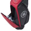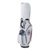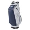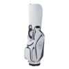 取り扱いやすいサイズ・重量と豊富な収納力を両立したソリッドなキャディバッグ。凹凸感のあるボディの迫力と、ヘアライン生地の上質な質感を新しいカラーリングでまとめました。口枠の取っ手や開口部の大きなシューズポケットがポイント。