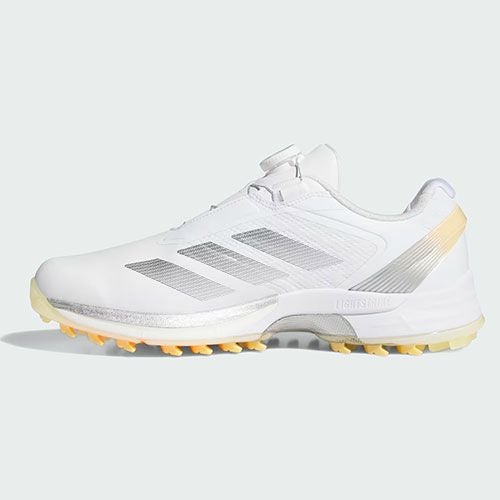 ☆即日出荷/2026年モデル☆ アディダス アディゼロ ZG LO ボア スパイクレス ゴルフシューズ OMX77 クラウドホワイト×アイアンメタリック×アイスタンジェリン(HQ0042)