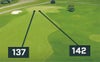 現在地のプレイラインを基準に最も近い距離、最も遠い距離のグリーンポイントを表示。