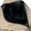 硬質なシボ合皮を使用し、高級感ある仕上がり。正面にファスナーポケット、内装には2分割のベタポケットを配置。ロゴは刺繍仕様。普段使いにも適したシンプルなデザイン。