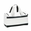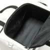 レザー調PU生地とエナメル生地を使用した、高級感のあるモデルです。ゴルフロッカーに立てた状態でも収納しやすいよう、側面ハンドルをつけました。本体外側に、ファスナーポケットが2か所あります。開口部がコの字型になっており、出し入れしやすい仕様です。開口部裏側は視認性の良いメッシュ仕立てのファスナーポケットで、本体内部には、ファスナーポケット、二つの仕切りポケット付き。取り外し可能なパット付きショルダーベルトも付属しています。
