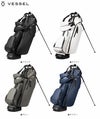 ・10ポケット・上部隠れポケット | 抗菌ベロア裏地・タオルリング・ストラップ傘ホルダー・カーボン製スタンド・サイドポケット(右側) | 抗菌ベロア裏地、キーホルダー付き・ダイヤルロック付 貴重品用抗菌ベロアポケット・マグネットポケット | 内部仕切りあり、抗菌ベロア裏地・ペンホルダー・マグネット式ボトルホルダー・ボールポケット | 内部整理用メッシュポケット3か所・サイド保冷ポケット(左側)・専用カートストラップスリーブ付属※VESSELのスタンドバッグは、スタンドを広げた状態での使用を前提に設計・製造されております。クラブを入れたままで、スタンドをたたみバッグを立てた場合、バッグが傾いたり、転倒する恐れがございます。ご使用に当たっては、スタンドを広げた状態でご利用ください。