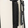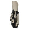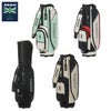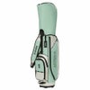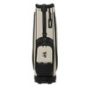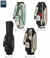 トラッドシリーズのカートキャディバッグ。ソフト合皮とエナメル生地を使用。盛り上げプリントのロゴと数箇所に使用したロゴ入りファスナーがデザインポイント。ファスナーポケット複数搭載で小物の収納に便利。口枠9型5分割、セパレーター3分割。