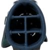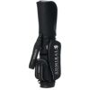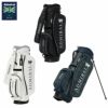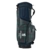 スタンドカバー付きのスタンドキャディバッグ。マット合皮にメッシュ生地をポイント使いし、シンプルながら異素材の組み合わせがアクセントになるデザイン。ロゴは刺繍で高級感を演出。前ポケットはダブルファスナーで間口が広く、片手でのアクセスが可能。前胴部にはグローブテープを装備。口枠9型5分割、セパレーター3分割。