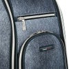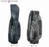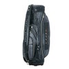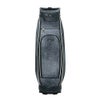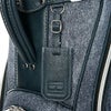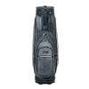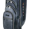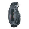 レザー調生地に風合いのある色の合皮を組み合わせたキャディバッグ。カジュアルな中にも高級感が漂い、前面には4つのポケット、背面にも収納スペースが装備されています。3点式ショルダーストラップと、ステッチのアクセントカラーが特徴で、特別ネームプレートも付いています。口枠5分割、セパレーター数3分割。