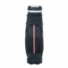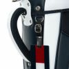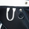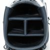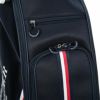 斜め柄の品の良いポリエステル生地とレザー調の合皮生地をMIXしたキャディバッグ。カジュアルなデザインに、トミーらしいトリコロールテープが配置されています。サイド面には大きく開閉するポケットが装備されており、新鮮なロゴ使いも特徴の一つです。口枠4分割、セパレーター数3分割。
