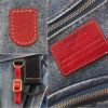 レザーパーツはこだわりの栃木レザー社製ジッパーの引き手、ブランドネーム、革プレートはベジタブルタンニンなめしのヌメ革で世界的にも人気のある栃木レザー社製を使いカスタマイズ。プレートなどを着けられるバックル付きのストラップも同じ素材を。