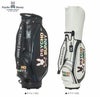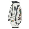 ソフト合皮を使用したキャディバッグ。ユニークさを際立たせたエナメルのアップリケとカラフルな縁取りが特徴。細身ながらも存在感のあるデザイン。