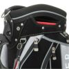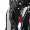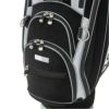 プレミアムフェイスシリーズのカートキャディバッグ。定番モデルに、ウルトラスエード(R)を採用したハイグレードモデル。起毛素材の風合いを活かしたブラックのみの展開。自動車の内装にも使われるこの素材は、色あせしにくく、摩擦に強いのが特長。付属の合皮も高耐久素材を採用。天然皮革のような質感と優れた耐久性を兼ね備えたアイテム。3点ショルダータイプ。