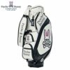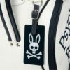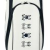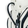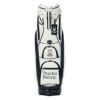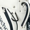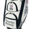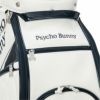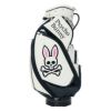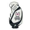 Psycho Bunnyの象徴、ピンクの耳のスカルバニーを左右に配した今シーズンのトップモデル、キャディバッグ。レザーライクな合皮を使用し、ロゴは全て刺繍で高級感を演出。大胆かつシンプルなデザインで長く愛用可能。ポーチや小物を掛けられるハンドル横にオリジナルカラビナ付き