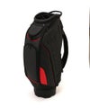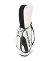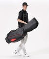 マットシンセティックレザーとエンボスPUを組み合わせたキャディバッグ。「NB」と「newbalance」のブランドアイコンを前面に出した印象に残るデザイン。高周波ロゴと3Dエンボスの異なる手法で立体感を演出し、8つのポケットで収納力も確保しています。仕切り数7の口枠設計により、クラブ同士の絡まりを抑え、スムーズな収納と取り出しを可能に。安定感がある構造で、機能性を重視しながらもゴルフシーンに馴染むバランスの取れたアイテムです。