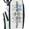 レザーライクなソフト合皮を使用したキャディバッグ。大胆に刺繍されたカラフルなバニーがPOPでカジュアルながらも高級感を演出。細身ながら収納力に優れたモデル