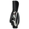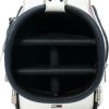 ベーシックシリーズのカートキャディバッグ。軽量シボ合皮を使用し、持ち運び時の負担を軽減。前回のベーシックモデルから改良を加え、上端とシューズポケットを新たに追加。ロゴは刺繍で表現し、ポイントにエナメル生地を使用することで上質感をプラス。機能性とデザイン性を兼ね備えたモデル。