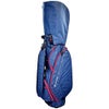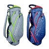 9.5型軽量キャディバッグ。重量2.40kgの軽量タイプ。口枠形状は5分割、2セパレーター構造。9箇所にポケットがあり荷物の整理整頓が簡単です。前ポケットはマグネット式でワンタッチ開閉。持ちやすい口枠ハンドル付き。フード、ショルダーベルト、名札、グローブホルダー、タオルフック、傘ホルダーも付属した豊富な機能を有したキャディバッグです。