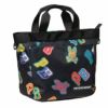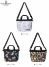 各色ごとに異なった柄を使ったラウントトートバック。内側にはペットボトルを立てて入れることができるポケット付き。2wayで使えるショルダーベルト付き。ポケット数:外3、内3
