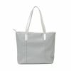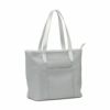 ソフトな合成皮革のトートバッグ。タウンでもゴルフでも使えるデザインで、本体と持ち手の配色が特徴です。サイズは40x19x38cmで、ポケット数は外1、内3。