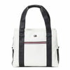 フラッグロゴシリーズのトートバッグ。高級感のあるシボ合皮を多色使いで組み合わせたデザインが特徴。肩掛け可能な長さの持ち手を採用し、快適に持ち運べる設計。前後に配置したポケットは、開閉部分がマグネット仕様でスムーズに出し入れ可能。メイン収納も大きく、内装にはファスナーポケットと仕切りポケット搭載。