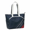 エッセンシャルシリーズのトートバッグ。生地目のあるポリエステルと滑らかな合皮を組み合わせたデザイン。厚盛りプリントでストライプラインとスモールテキストのブランドロゴを表現し、シンプルながらも存在感のある仕上がり。長めのハンドルで肩掛けも可能。前後にはマグネット付きポケット。細かい収納も多数あり収納力と使いやすさも兼ね備えたアイテム。