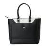 ベーシックシリーズのトートバッグ。軽量シボ合皮を使用し、軽くて持ち運びの負担を軽減。ロゴは刺繍で表現され、ポイントにエナメル生地を取り入れることで上質感を演出。表面には差し込みポケットを備え、実用性にも配慮したデザイン。
