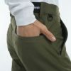 撥水加工のストレッチ素材を使用した4WAYテーパードパンツ。