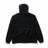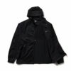ワッシャー加工されたウーブンと可動域が求められる箇所にリップストップストレッチウーブンを配置したハイブリッドなフーディージャケット。天候の変化に対応するフードは、スイング時に邪魔にならないよう首元に備え付けたタブで収納も可能。背面にはベンチレーションを配備。
