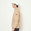 ソフトなナイロン素材を使用したブルゾン。裏地には、軽量で嵩高性のある「ふんわり裏地」を採用し、まるで薄中綿のような柔らかな肌触りが特徴です。メッシュ裏地よりも安心感があり、中綿よりも早い時期から着用できる、汎用性の高いアイテム。同素材のボトムとのセットアップコーディネートも、今シーズンのおすすめスタイルです。
