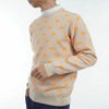 静電気軽減リンキング糸を使用した、サラリと滑らかな風合いのレーヨン混素材を採用したジャカードクルーセーター。