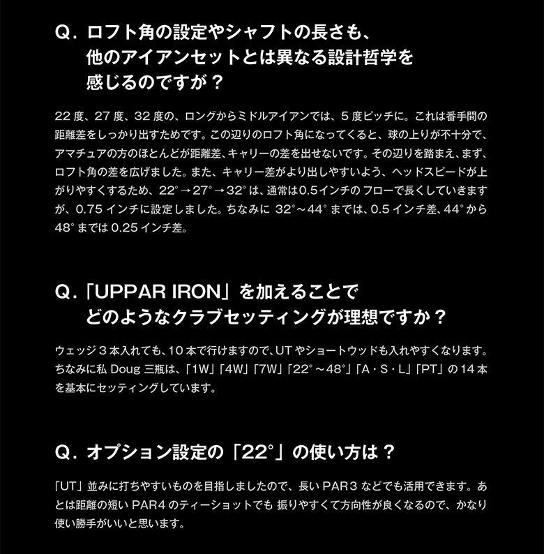 他の画像を見る ☆即日出荷☆ 【日本人に適したヘッド設計】UPPAR 22度 アイアン単品 島田シャフト K's スチールシャフト ダグ三瓶監修 アッパーアイアン 当店販売価格 ¥ 40,000 税込 カートに入れる お気に入りに登録する