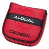「Ai-DUAL 1/2-BALL CRUISERパター」は、Ai-DUAL 1/2-BALLパターのシャフトを長くし、グリップも長めのタイプにしたバージョンです。最大の特徴は、やはりヘッド上面の前方に描かれた、半分のボールのアライメントです。半円で、前側が直線、後ろが曲線になっていることもあり、完全な円以上に構えた際のフェース面とボールのズレを感じやすく、中央に入れられたアライメントラインとボールのアライメントを合わせるように利用すれば、さらに正確なセットアップが可能となります。アメリカの2つの大学のゴルフ部による実証実験として、合計52名、1,060パットでの調査を行いました。得られた結果は非常にポジティブで、アドレス時のフェース向きの改善やパッティング方向性の安定感もみられ、さらに、約2メートルのパットが10回中1.13回以上、従来のパターより成功したという結果が得られています。