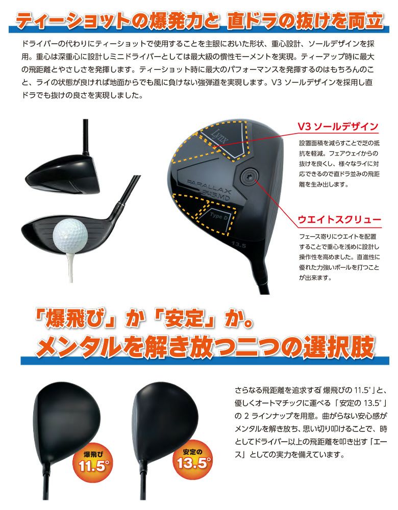 他の画像を見る ☆2026年モデル☆ リンクス パララックス 345 MD ドライバー オリジナルカーボンシャフト 当店販売価格 ¥ 32,780 税込 会員価格あり 在庫切れ カートに入れる お気に入りに登録する
