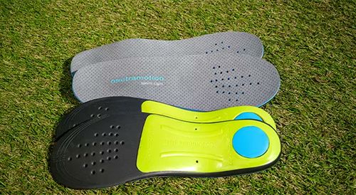 足も最も駆使するゴルフ。 ニュートラモーションインソールの威力ゴルフのスイングにおいて大切なのは軸。ニュートラモーションはアドレス時の軸をしっかりつくり安定したスイング土台をつくります。