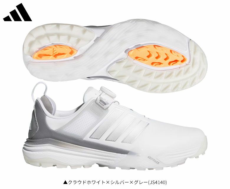 ☆即日出荷/2026年モデル☆ アディダス アディパワー 26 ボア スパイクレス ゴルフシューズ OOM30 クラウドホワイト×シルバー×グレー(JS4140)