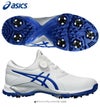GEL?ACE PRO MのBOAフィットシステムモデル。前足部とかかと部の接地面積を広げることで、パワフルな踏み込みをサポート。シュータンとアッパーが一体化したモノソック構造を採用しており、スウィング動作の最後まで足へのフィット感を追求。