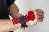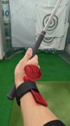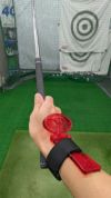 バンドに手を通し、バックルを手首に回します。きつ過ぎたり緩すぎたりしないようしっかりと固定します。手首の角度がアドレス時の角度になるところで手の甲に触れるよう、後ろ側のヒンジプレートを動かせば装着完了です。