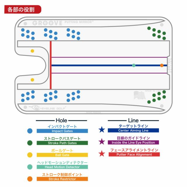 アドレス、ストローク、インパクトで左右の目が同じライン上に乗るようにすることで、ターゲットラインに正確に打ち出しやすくなります。